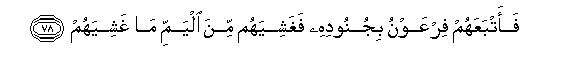 78. FaatbaAAahum firAAawnu bijunoodihi faghashiyahum mina alyammi ma ghashiyahum