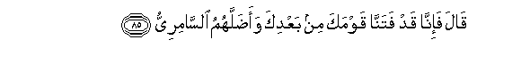 85. Qala fa-inna qad fatanna qawmaka min baAAdika waadallahumu alssamiriyyu