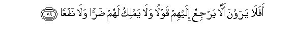 89. Afala yarawna alla yarjiAAu ilayhim qawlan wala yamliku lahum darran wala nafAAan