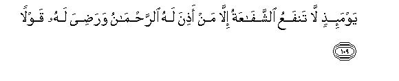 109. Yawma-ithin la tanfaAAu alshshafaAAatu illa man athina lahu alrrahmanu waradiya lahu qawlan