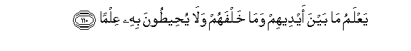 110. YaAAlamu ma bayna aydeehim wama khalfahum wala yuheetoona bihi AAilman