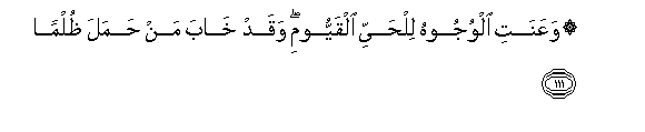 111. WaAAanati alwujoohu lilhayyi alqayyoomi waqad khaba man hamala thulman