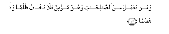 112. Waman yaAAmal mina alssalihati wahuwa mu/minun fala yakhafu thulman wala hadman