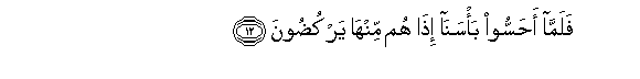 12. Yet, when they felt Our Punishment (coming), behold, they (tried to) flee from it.