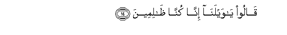 14. They said: "Ah! woe to us! We were indeed wrong-doers!"