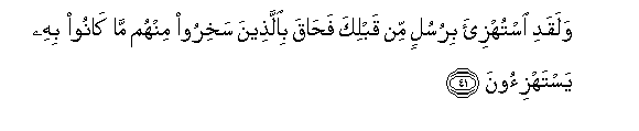 41. Walaqadi istuhzi-a birusulin min qablika fahaqa biallatheena sakhiroo minhum ma kanoo bihi yastahzi-oona