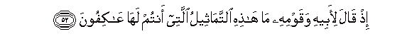52. Ith qala li-abeehi waqawmihi ma hathihi alttamatheelu allatee antum laha AAakifoona
