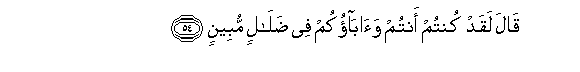 54. Qala laqad kuntum antum waabaokum fee dalalin mubeenin
