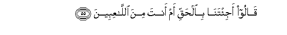 55. Qaloo aji/tana bialhaqqi am anta mina allaAAibeena