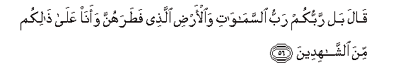 56. Qala bal rabbukum rabbu alssamawati waal-ardi allathee fatarahunna waana AAala thalikum mina alshshahideena