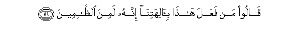 59. Qaloo man faAAala hatha bi-alihatina innahu lamina alththalimeena