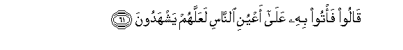 61. Qaloo fa/too bihi AAala aAAyuni alnnasi laAAallahum yashhadoona