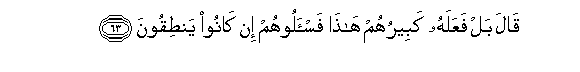63. Qala bal faAAalahu kabeeruhum hatha fais-aloohum in kanoo yantiqoona