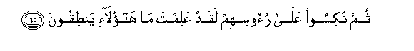 65. Thumma nukisoo AAala ruoosihim laqad AAalimta ma haola-i yantiqoona