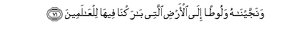 71. Wanajjaynahu walootan ila al-ardi allatee barakna feeha lilAAalameena
