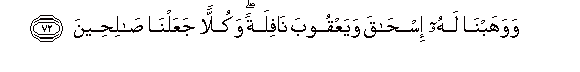 72. Wawahabna lahu ishaqa wayaAAqooba nafilatan wakullan jaAAalna saliheena