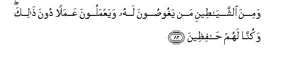 82. And of the evil ones, were some who dived for him, and did other work besides; and it was We Who guarded them.