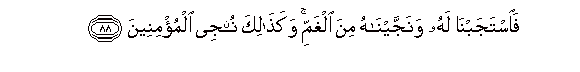 88. Faistajabna lahu wanajjaynahu mina alghammi wakathalika nunjee almu/mineena