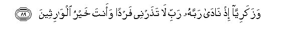 89. Wazakariyya ith nada rabbahu rabbi la tatharnee fardan waanta khayru alwaritheena