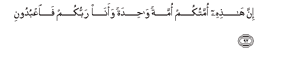 92. Inna hathihi ommatukum ommatan wahidatan waana rabbukum faoAAbudooni
