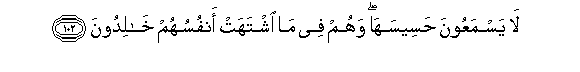 102. Not the slightest sound will they hear of Hell: what their souls desired, in that will they dwell.