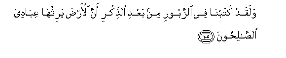 105. Walaqad katabna fee alzzaboori min baAAdi alththikri anna al-arda yarithuha AAibadiya alssalihoona