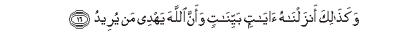 16. Wakathalika anzalnahu ayatin bayyinatin waanna Allaha yahdee man yureedu