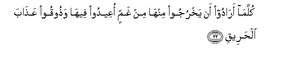 22. Kullama aradoo an yakhrujoo minha min ghammin oAAeedoo feeha wathooqoo AAathaba alhareeqi