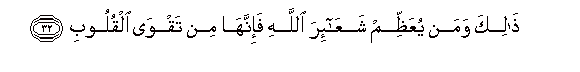 32. Thalika waman yuAAaththim shaAAa-ira Allahi fa-innaha min taqwa alquloobi