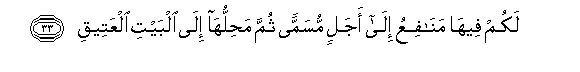 33. Lakum feeha manafiAAu ila ajalin musamman thumma mahilluha ila albayti alAAateeqi