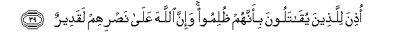 39. Othina lillatheena yuqataloona bi-annahum thulimoo wa-inna Allaha AAala nasrihim laqadeerun
