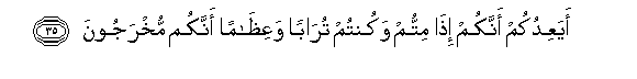35. AyaAAidukum annakum itha mittum wakuntum turaban waAAithaman annakum mukhrajoona
