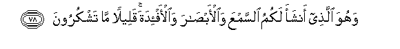 78. It is He Who has created for you (the faculties of) hearing, sight, feeling and understanding: little thanks it is ye give!
