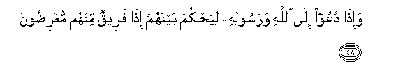 48. Wa-itha duAAoo ila Allahi warasoolihi liyahkuma baynahum itha fareequn minhum muAAridoona