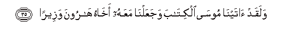 35. Walaqad atayna moosa alkitaba wajaAAalna maAAahu akhahu haroona wazeeran