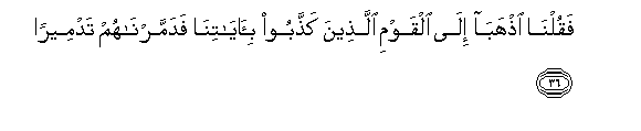 36. Faqulna ithhaba ila alqawmi allatheena kaththaboo bi-ayatina fadammarnahum tadmeeran