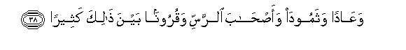38. As also 'Ad and Thamud, and the Companions of the Rass, and many a generation between them.