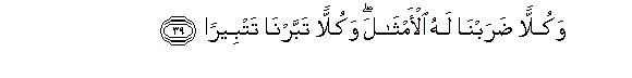 39. Wakullan darabna lahu al-amthala wakullan tabbarna tatbeeran