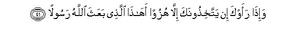 41. Wa-itha raawka in yattakhithoonaka illa huzuwan ahatha allathee baAAatha Allahu rasoolan