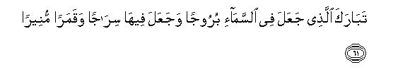 61. Tabaraka allathee jaAAala fee alssama-i buroojan wajaAAala feeha sirajan waqamaran muneeran