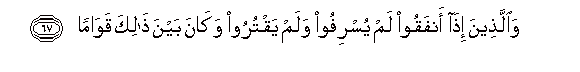 67. Waallatheena itha anfaqoo lam yusrifoo walam yaqturoo wakana bayna thalika qawaman