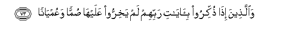 73. Waallatheena itha thukkiroo bi-ayati rabbihim lam yakhirroo AAalayha summan waAAumyanan