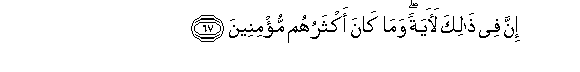 67. Inna fee thalika laayatan wama kana aktharuhum mu/mineena