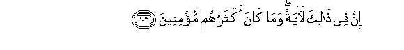 103. Inna fee thalika laayatan wama kana aktharuhum mu/mineena