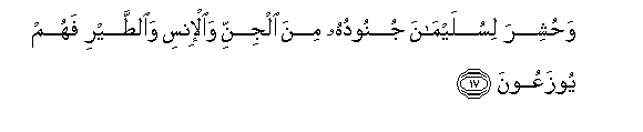 17. Wahushira lisulaymana junooduhu mina aljinni waal-insi waalttayri fahum yoozaAAoona