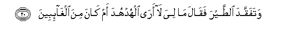 20. Watafaqqada alttayra faqala ma liya la ara alhudhuda am kana mina algha-ibeena