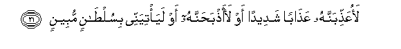 21. LaoAAaththibannahu AAathaban shadeedan aw laathbahannahu aw laya/tiyannee bisultanin mubeenin