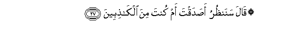 27. (Solomon) said: "Soon shall we see whether thou hast told the truth or lied!