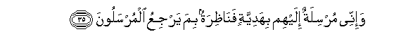35. Wa-innee mursilatun ilayhim bihadiyyatin fanathiratun bima yarjiAAu almursaloona