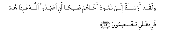 45. Walaqad arsalna ila thamooda akhahum salihan ani oAAbudoo Allaha fa-itha hum fareeqani yakhtasimoona